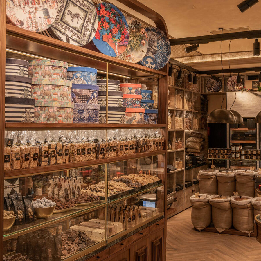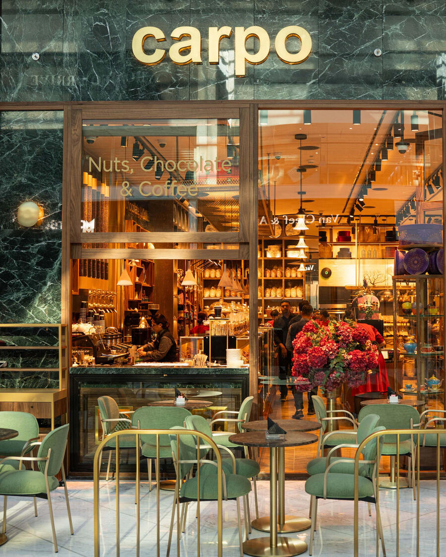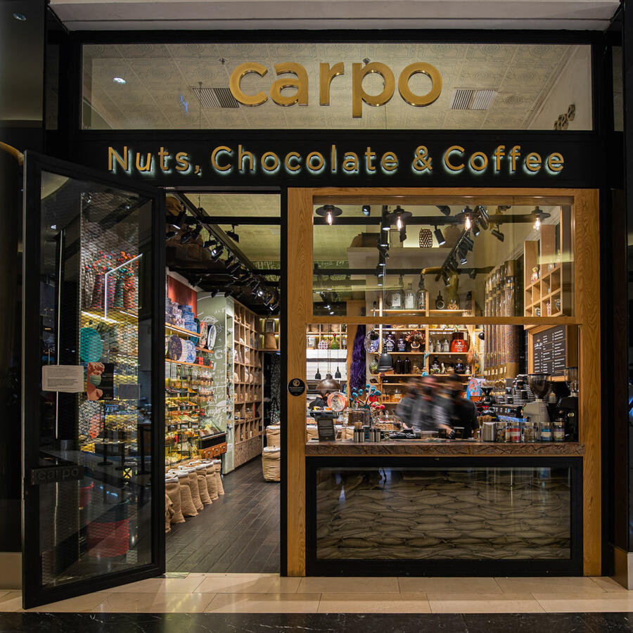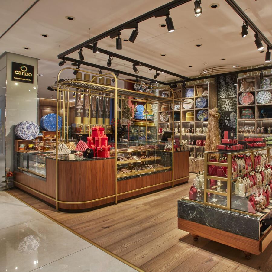carpo Attica is the tenth retail store of carpo family, located at the fourth floor of Attica, one of the most prestigious shopping department stores in Greece. It opened its doors in September 2021 and shares the same principles that all carpo stores represent excellent quality of nuts, chocolate, coffee, dried fruits and honey, personalized service and amazing ambience.The warm welcoming ambiance, the genuine hospitality, and the luxury interiors transport guests to an immersive experience of another era honoring every guest and ensuring each visit is unforgettable.