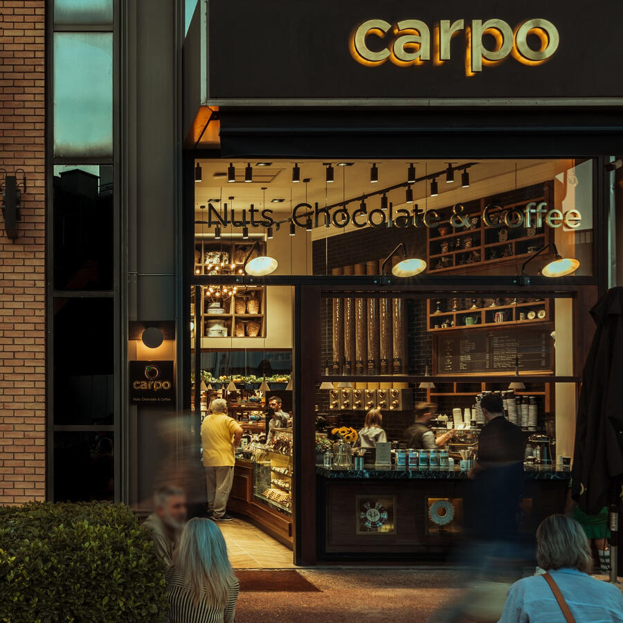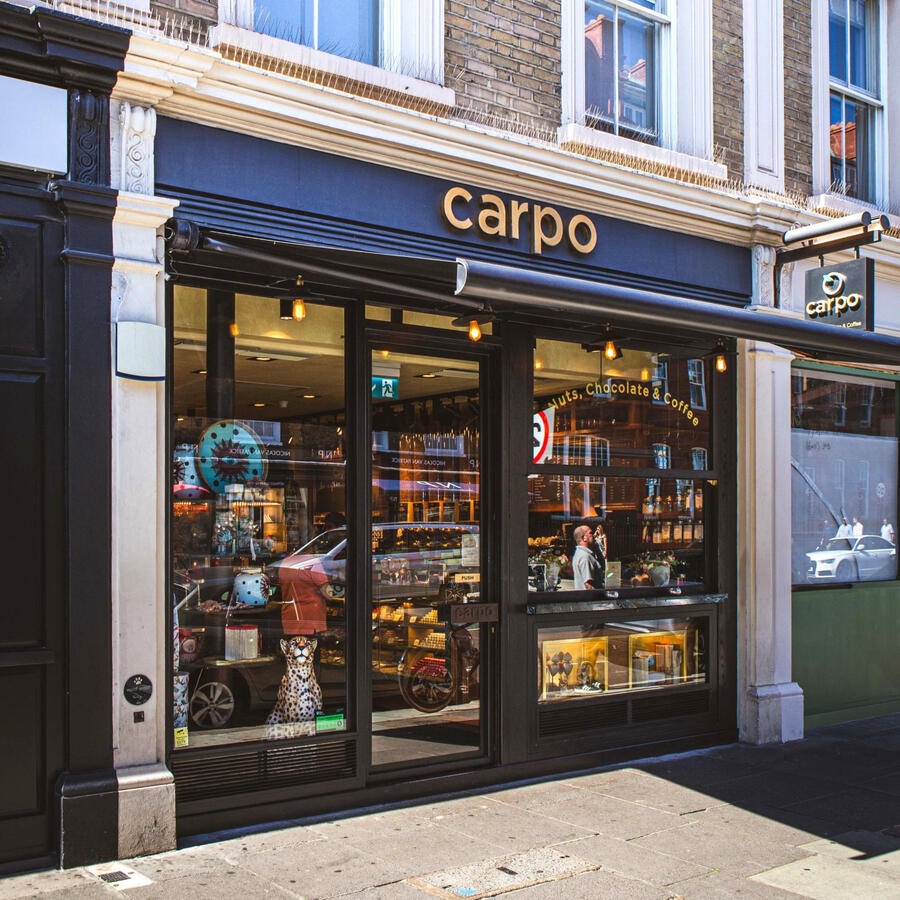 Carpo Piccadilly opened its doors on February 2013. Located at 16 Piccadilly, carpo Piccadilly is unlike other luxury food vendors in that it takes its customer journey a step further, immersing visitors in the flavours, smells and sounds of the products and countries where they come from, giving a complete sensory experience.Its extensive range stretches from popular favourites such as pistachios, peanuts and almonds, to the less familiar ones like dried stuffed figs with walnuts, and nectarines. While the raw materials are from far and wide, much of the process and production required to get many of the ingredients from nature to the store floor takes place here, and many products go straight from the oven to the shelves. Upon entering the store, customers are first hit by the rich aroma of the store floor nut roasting ovens that are fired up at regular intervals to make sure products are as fresh as can be.The relocation of carpo Piccadilly has been realized in December 2023 in an emblematic building in 10 Glasshouse Str, located off Regent Street and a minute’s walk from Piccadilly Circus, featuring an extended sitting area, with a luxurious range of nuts, chocolate, coffee and more new delights.