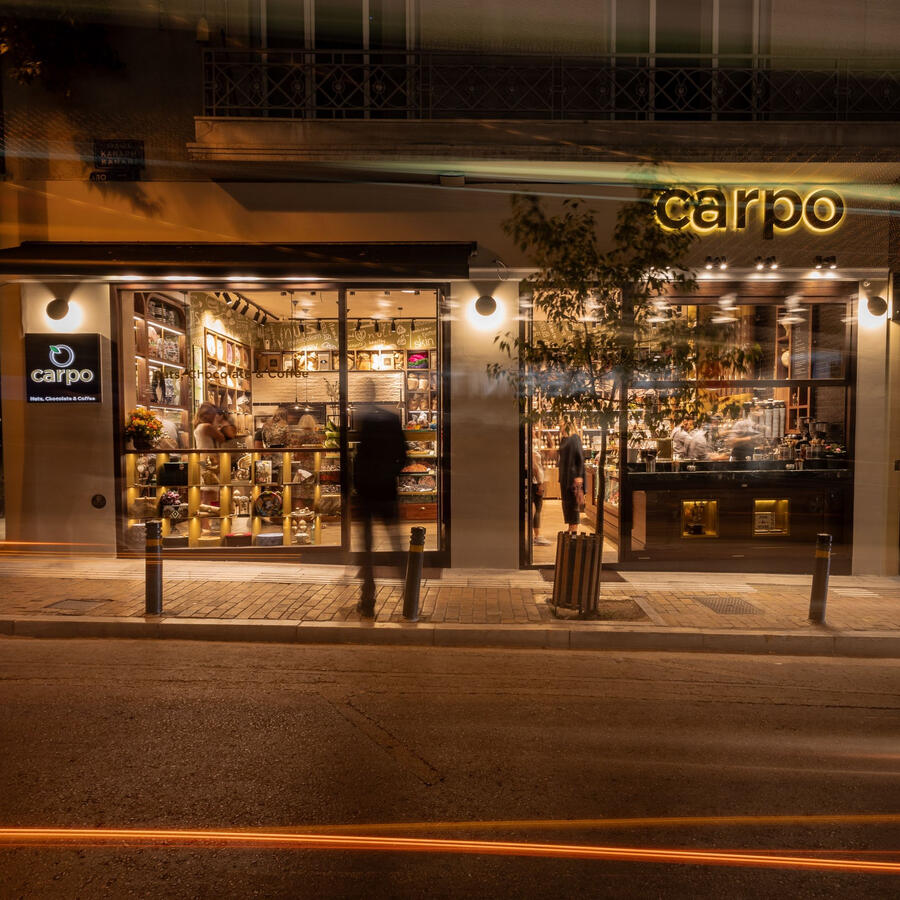 Nuts, chocolates, dried fruits, honey, coffee and beverages. The carpo Kolonaki store was established by carpo Hellas in November 2011, a particularly difficult time for Greece. Our need to offer personalized services and provide you with our products in a more direct manner was the incentive that led us to take this next step and enter retail.Having gained valuable experience through our cooperation with nationwide chains of stores, hotels, restaurants and individual retailers and servicing 300 points in the Attica region on a daily basis, we knew what we wanted our first retail store to be. We wanted it to be a place where one would find all kind of nuts, in certainly the best quality, dried fruits and exceptional coffee. A variety of chocolates, the purest honey from Greek producers and other products that will be available only when in season.Nutrition is not a matter of price, but one of value.